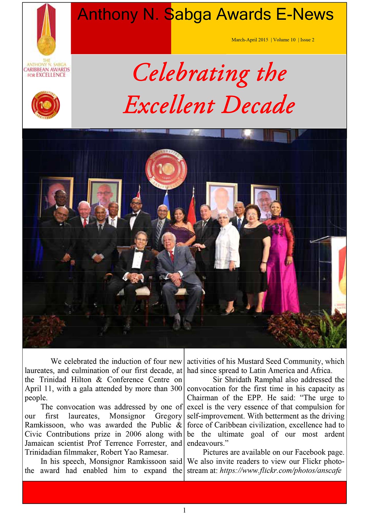 E News March April 2015: Click here for our Laureates’ acceptance speeches.