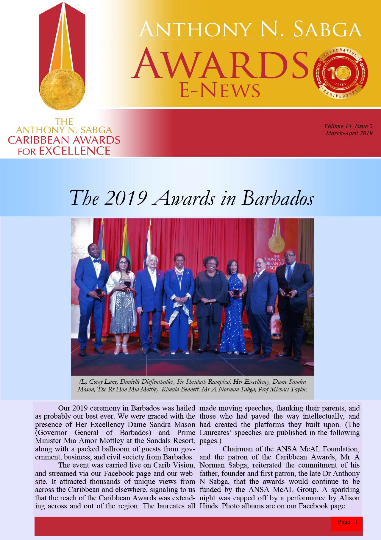 E-News January – February 2019: Our 2019 Ceremony is in Barbados